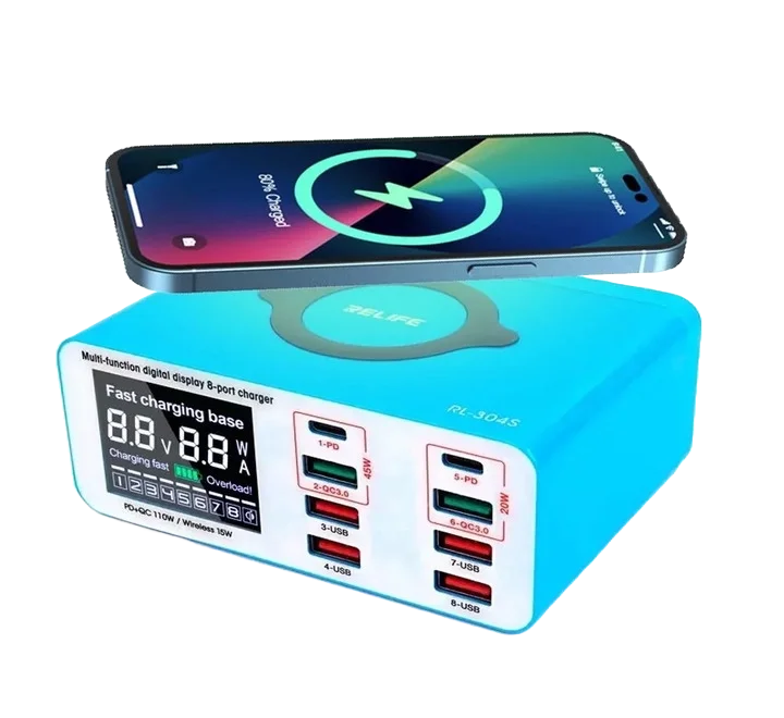 CARGADOR DE 8 PUERTOS CON PANTALLA DIGITAL MULTIFUNCIONAL 15W